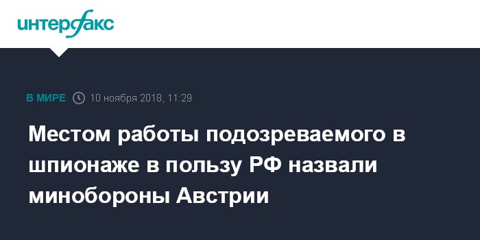 Накануне австрийские СМИ сообщили, что бывший офицер, ныне пенсионер, в период своей службы в австрийской армии на протяжении 20 лет занимался шпионажем в пользу России. Газета Kronen Zeitung со ссылкой на неназванные источники указала, что офицер получил за сбор разведданных в общей сложности около 300 тыс. евро.