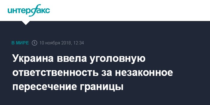 Москва. 10 ноября. INTERFAX.RU - Украина с 10 ноября установила уголовную ответственность за незаконное пересечение государственной границы с целью причинения вреда интересам государства.
