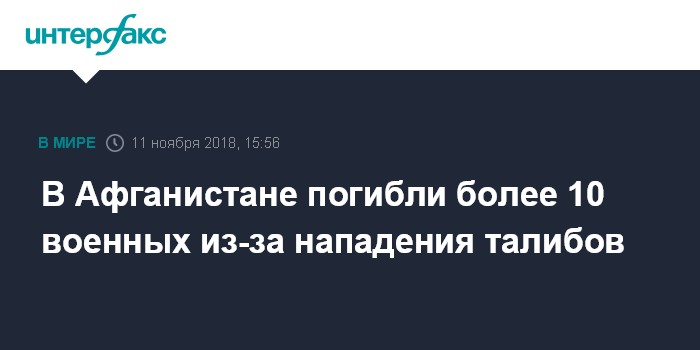 Москва. 11 ноября. INTERFAX.RU - По меньшей мере, 12 военнослужащих афганской армии погибли в результате атаки боевиков движения "Талибан" (террористическая организация, запрещенная в РФ) на военную базу в провинции Баглан на севере Афганистана, передает в воскресенье телеканала Al Jazeera.