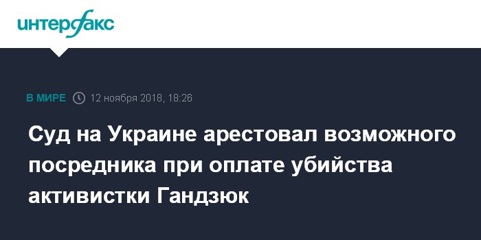 Суд на Украине арестовал возможного посредника при оплате убийства активистки Гандзюк