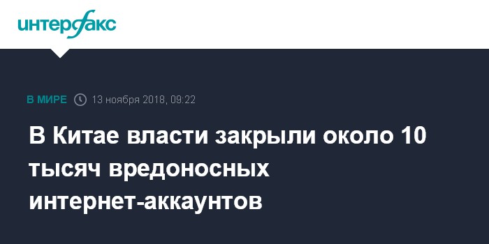 Москва. 13 ноября. INTERFAX.RU - В рамках проходящей в Китае борьбы за чистоту распространяемой в интернете информации власти закрыли более 9,8 тысячи аккаунтов, которые распространяли недостоверную и вредную информацию, сообщила Администрация по киберпространству Китая.
