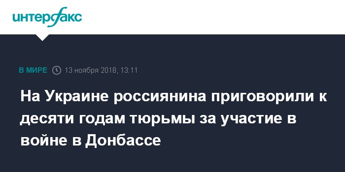 На Украине россиянина приговорили к десяти годам тюрьмы за участие в войне в Донбассе