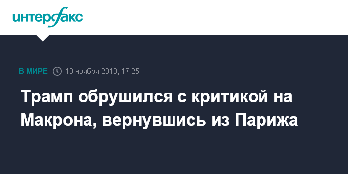 "Проблема в том, что у Эммануэля очень низкий рейтинг одобрения во Франции - 26%, а уровень безработицы почти 10%. Он просто пытался перевести тему", - написал Трамп в твиттере.