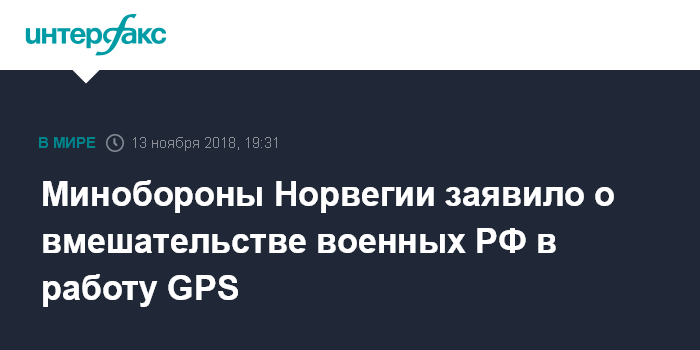 Москва. 13 ноября. INTERFAX.RU - Министерство обороны Норвегии официально подтвердило появившиеся ранее сведения о том, что военные считают Россию причастной к сбоям в работе GPS, наблюдавшимся на территории страны в период учений НАТО Trident Juncture, сообщает во вторник информагентство Associated Press.