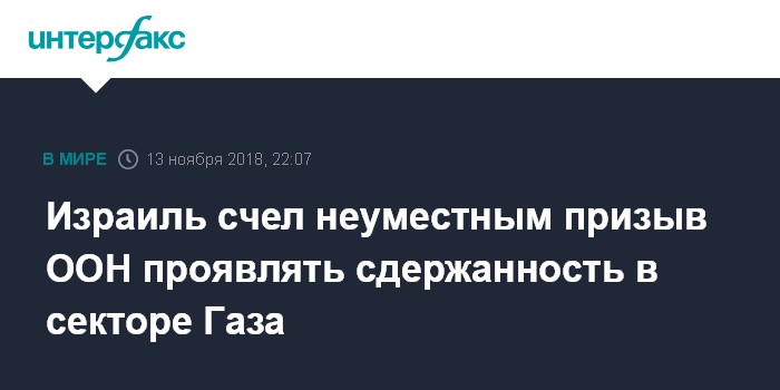 Израиль счел неуместным призыв ООН проявлять сдержанность в секторе Газа