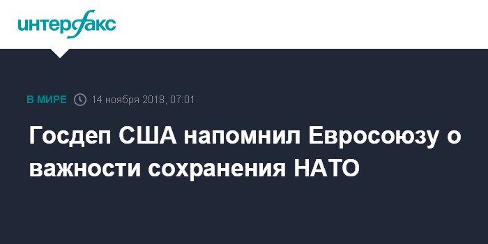 Госдеп США напомнил Евросоюзу о важности сохранения НАТО