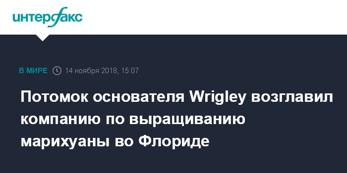 Потомок основателя Wrigley возглавил компанию по выращиванию марихуаны во Флориде