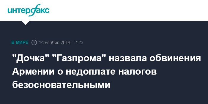 "Дочка" "Газпрома" назвала обвинения Армении о недоплате налогов безосновательными