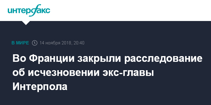 В начале октября во Франции начали расследование в связи с исчезновением Мэна Хунвэя, который на тот момент занимал пост президента Интерпола. О его пропаже тогда сообщила его супруга. Она утверждала, что муж не выходил на связь с 29 сентября, а также, что некоторое время назад получала угрозы через социальные сети, а также по телефону.