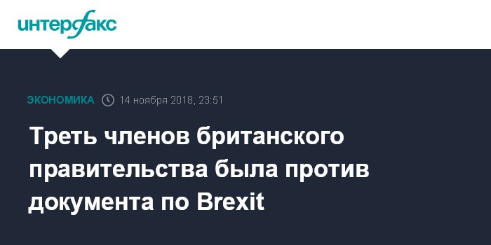 Москва. 14 ноября. INTERFAX.RU - Черновой вариант соглашения по Brexit, предложенный премьером Великобритании Терезой Мэй, устроил далеко не всех членов ее правительства, сообщили в среду лондонские СМИ.