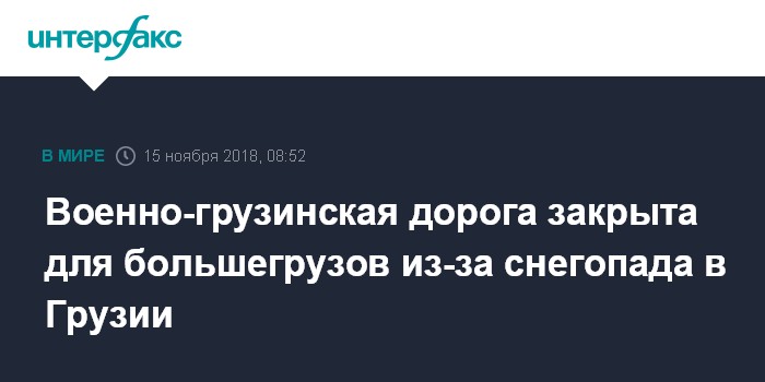 Москва. 15 ноября. INTERFAX.RU - Военно-Грузинская дорога, связывающая Россию со странами Закавказья, закрыта на выезд из РФ для грузовиков, сообщили агентству "Интерфакс" в пресс-службе ГУ МЧС по Северной Осетии.