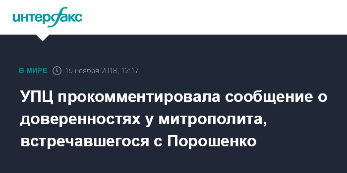 Накануне в СМИ появилась информация о том, что митрополит Винницкий и Барский Симеон якобы получил доверенности от 15 епископов УПЦ на встречу с президентом Украины, с которыми и прибыл 13 ноября к Петру Порошенко.