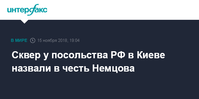Как сообщалось, инициативу присвоить имя Немцова скверу, рядом с которым находится посольство России, Киевская городская государственная администрация поддержала 22 июня.