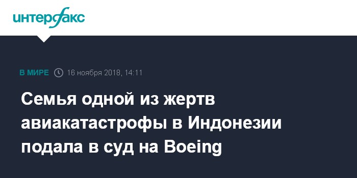 Москва. 16 ноября. INTERFAX.RU - Родители доктора Рио Нанды Пуртамы, погибшего при крушении самолета Boeing 737 Max 8 авиакомпании Lion Air в Индонезии, подали в суд на авиастроительную компанию, сообщает американский телеканал CNN.