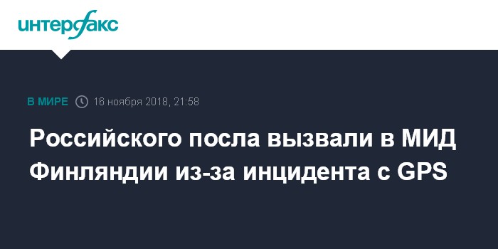 Российского посла вызвали в МИД Финляндии из-за инцидента с GPS