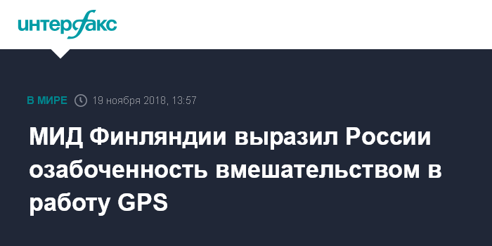 На состоявшейся в понедельник встрече посла РФ в Хельсинки Павла Кузнецова и статс-секретаря МИД Финляндии Матти Антонена (Matti Antonen) было сказано, что "Финляндия выразила озабоченность по поводу вмешательства в работу системы позиционирования и, в частности, воздействия на гражданскую авиацию", сообщил портал телерадиовещания Yle.
