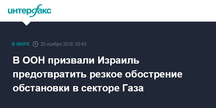 В ООН призвали Израиль предотвратить резкое обострение обстановки в секторе Газа
