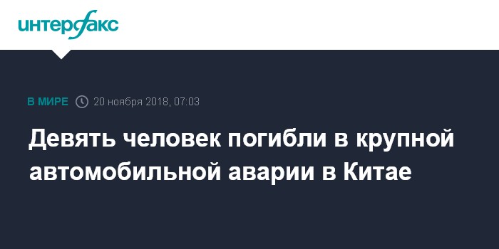 Девять человек погибли в крупной автомобильной аварии в Китае