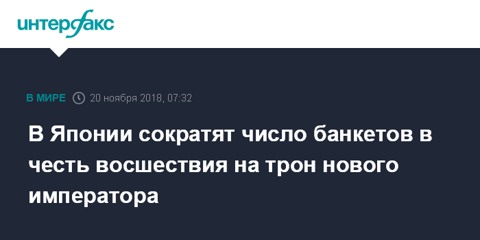 Москва. 20 ноября. INTERFAX.RU - Правительство Японии решило сократить число банкетов с семи до четырех в честь возведения на престол нового императора Нарухито, сообщает "Майнити".
