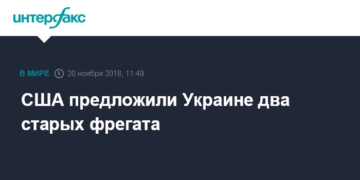 Москва. 20 ноября. INTERFAX.RU - Украина получила от США предложение о передаче ей двух фрегатов Oliver Hazard Perry, ранее выведенных из состава американских Военно-морских сил (ВМС), заявляет командующий ВМС Вооруженных сил Украины Игорь Воронченко.