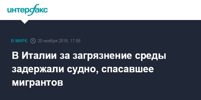 Москва. 20 ноября. INTERFAX.RU - Итальянские власти отдали приказ о задержании судна Aquarius, занимающегося спасением мигрантов в Средиземном море, так как подозревают экипаж в загрязнении окружающей среды, сообщает во вторник "Би-Би-Си".