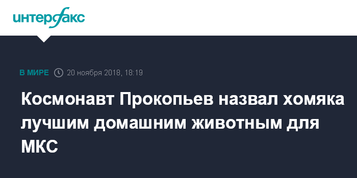 Москва. 20 ноября. INTERFAX.RU - Хомяк лучше других животных подходит в качестве домашнего животного на Международной космической станции, считает космонавт Роскосмоса" Сергей Прокопьев.
