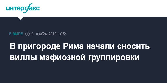 Москва. 21 ноября. INTERFAX.RU - Сотрудники полиции начали операцию по демонтажу близ Рима восьми вилл, принадлежащих членам мафиозной группировки "Казамоника", сообщает в среду итальянская газета Corriere della Sera.