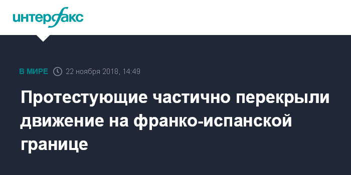 Москва. 22 ноября. INTERFAX.RU - Участники акций "Желтые жилеты", протестующие против роста цен на топливо, в четверг частично заблокировали движение транспорта на границе Франции и испанской Страны басков, сообщает издание Ouest-France.