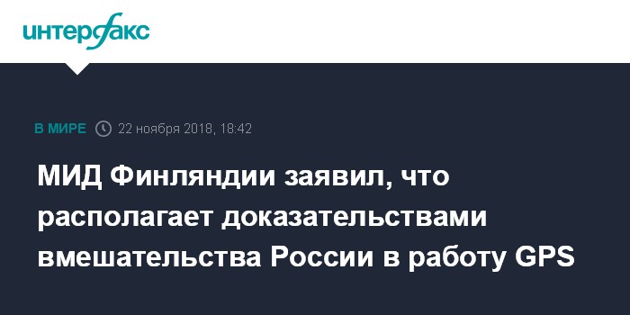Москва. 22 ноября. INTERFAX.RU - Министр иностранных дел Финляндии Тимо Сойни заявил, что у его страны есть доказательства вмешательства России в работу глобальной навигационной системы GPS во время учений НАТО Trident Juncture.