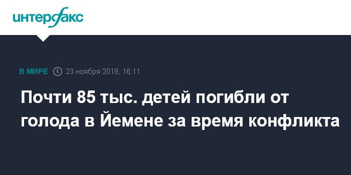 Международная организация Save the Children проанализировала данные ООН о смертности детей с сильным недоеданием и подсчитала, что в Йемене от голода погибло почти 85 тыс. детей в период с апреля 2015 года по октябрь 2018-го.