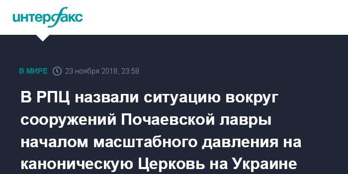 Москва. 23 ноября. INTERFAX.RU - Отмена передачи объектов Почаевской лавры в пользование Церкви говорит о начале масштабной кампании против канонической УПЦ, считают в Московском патриархате.