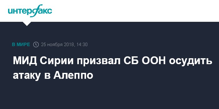 Москва. 25 ноября. INTERFAX.RU - Сирийские власти обратились к Совету Безопасности ООН с призывом осудить атаку в Алеппо, сообщает в воскресенье агентство SANA.