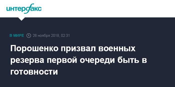 Москва. 26 ноября. INTERFAX.RU - Президент Украины Петр Порошенко анонсировал проведение работы с военнослужащими резерва первой очереди.