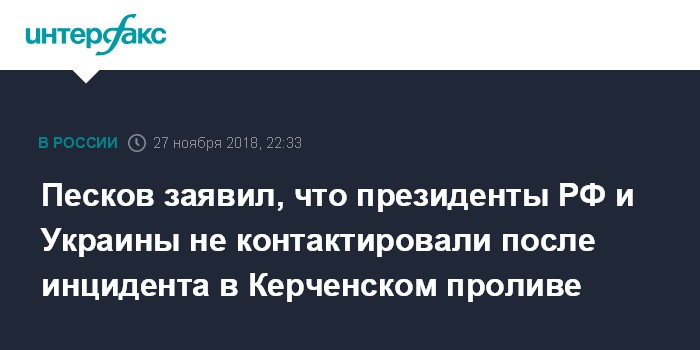 Песков заявил, что президенты РФ и Украины не контактировали после инцидента в Керченском проливе