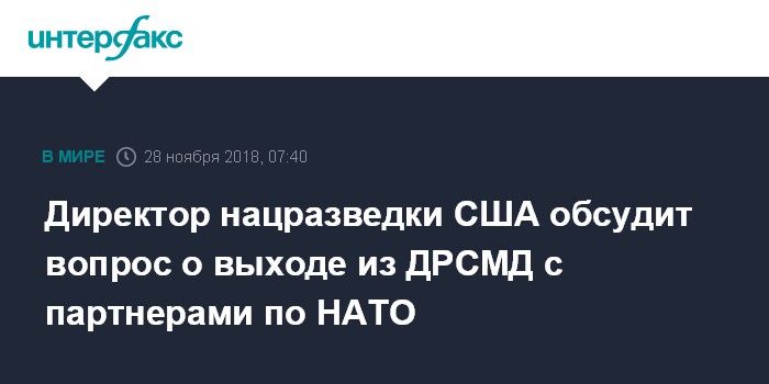 Директор нацразведки США обсудит вопрос о выходе из ДРСМД с партнерами по НАТО