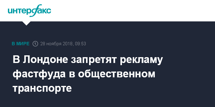 Москва. 28 ноября. INTERFAX.RU - В Лондоне с 25 февраля следующего года запретят рекламировать фастфуд в общественном транспорте, сообщает "Би-Би-Си".