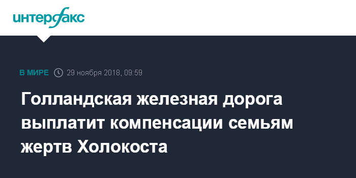 Голландская железная дорога выплатит компенсации семьям жертв Холокоста