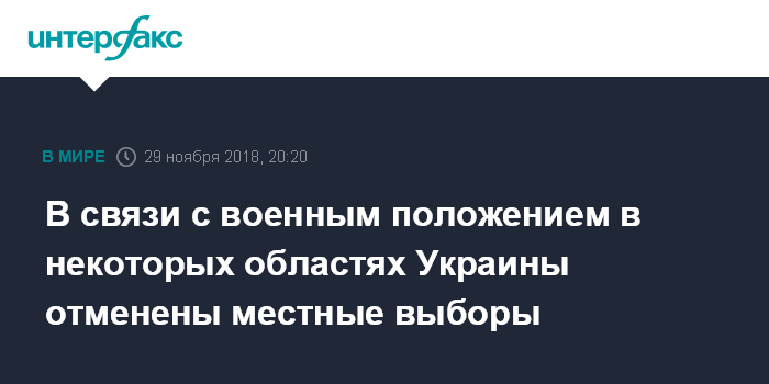 Москва. 29 ноября. INTERFAX.RU - Центральная избирательная комиссия Украины указывает субъектам и другим участникам местных выборов на необходимость неукоснительного соблюдения требований закона о правовом режиме военного положения относительно запрета проведения выборов в тех 10 областях, где оно было введено.