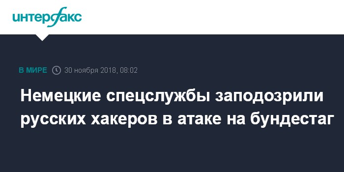 Москва. 30 ноября. INTERFAX.RU - Русских хакеров заподозрили во взломе почтовых ящиков нескольких депутатов немецкого бундестага, сообщил Der Spiegel. Кроме того, от атаки пострадали бундесвер и несколько посольств.