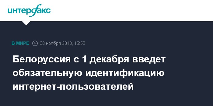 Москва. 30 ноября. INTERFAX.RU - В Белоруссии с 1 декабря 2018 года вступает в действие новая редакция закона "О средствах массовой информации". Закон, в частности, предусматривает обязательную идентификацию пользователей интернет-ресурсов, в том числе комментаторов, и также на форумах.