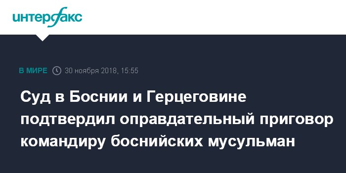 Суд в Боснии и Герцеговине подтвердил оправдательный приговор командиру боснийских мусульман