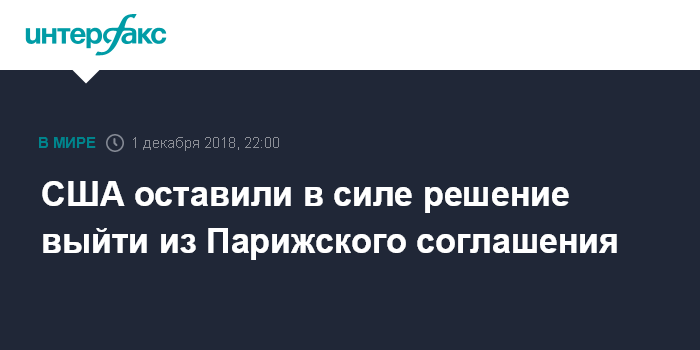В ней также говорится, что США со своей стороны "повторяют (свою приверженность - ИФ) решению выйти из Парижского соглашения".