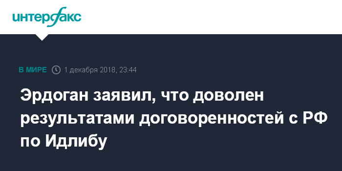 "Несмотря на трудности, в результате принятых по Идлибу мер поставленные цели были достигнуты", - заявил он на пресс-конференции в Буэнос-Айресе. Слова президента Турции переводились на английский.