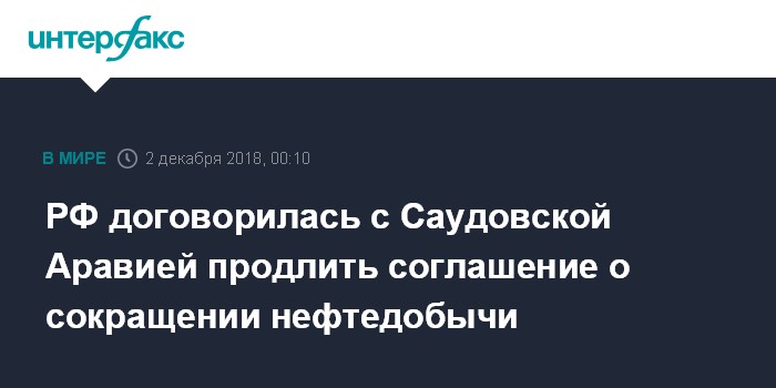 РФ договорилась с Саудовской Аравией продлить соглашение о сокращении нефтедобычи