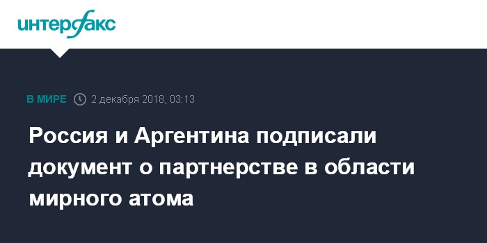 Россия и Аргентина подписали документ о партнерстве в области мирного атома