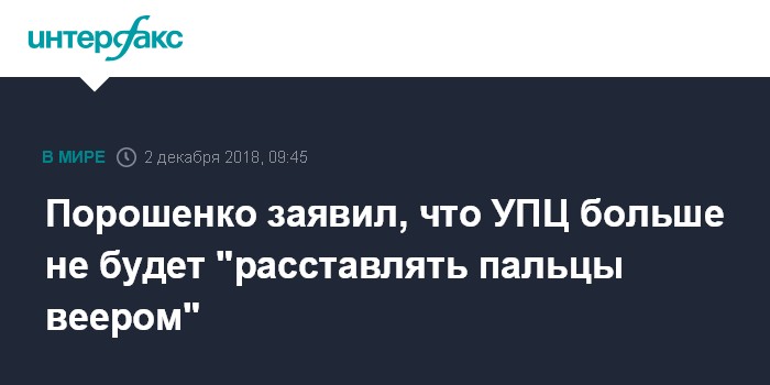 "Еще раз заявляю: автокефальная православная церковь Украины не будет государственной. Государство гарантирует конституционное право свободы вероисповеданий, в том числе и тем, кто захочет остаться в единстве с российской церковью. Но пальцы веером Московский патриархат тут расставлять больше не будет, как и клеймить, кто у нас каноничный, а кто у нас безблагодатный", - сказал Порошенко в видеообращении по случаю годовщины всеукраинского референдума о независимости Украины.