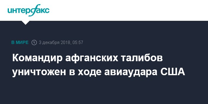 Командир афганских талибов уничтожен в ходе авиаудара США