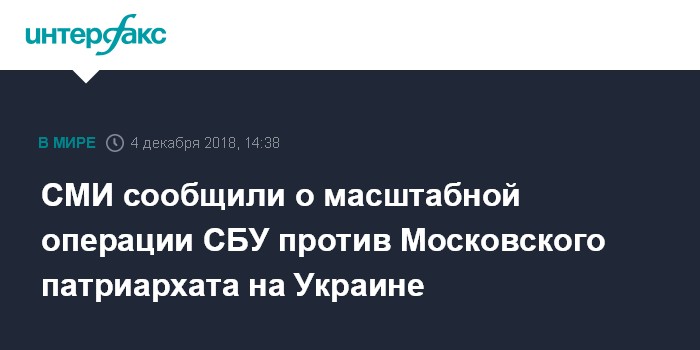 СМИ сообщили о масштабной операции СБУ против Московского патриархата на Украине