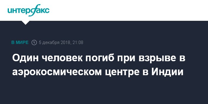 Один человек погиб при взрыве в аэрокосмическом центре в Индии