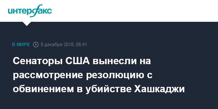 Сенаторы США вынесли на рассмотрение резолюцию с обвинением в убийстве Хашкаджи